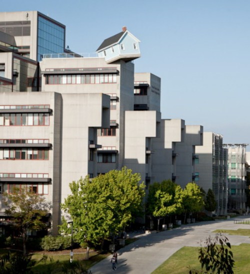 κανονικό σπίτι στην κορυφή του κτιρίου Jacobs στην πανεπιστημιούπολη του Πανεπιστημίου της Καλιφόρνια.